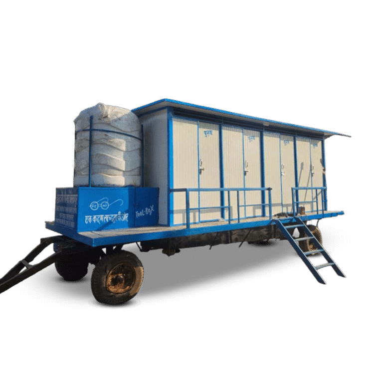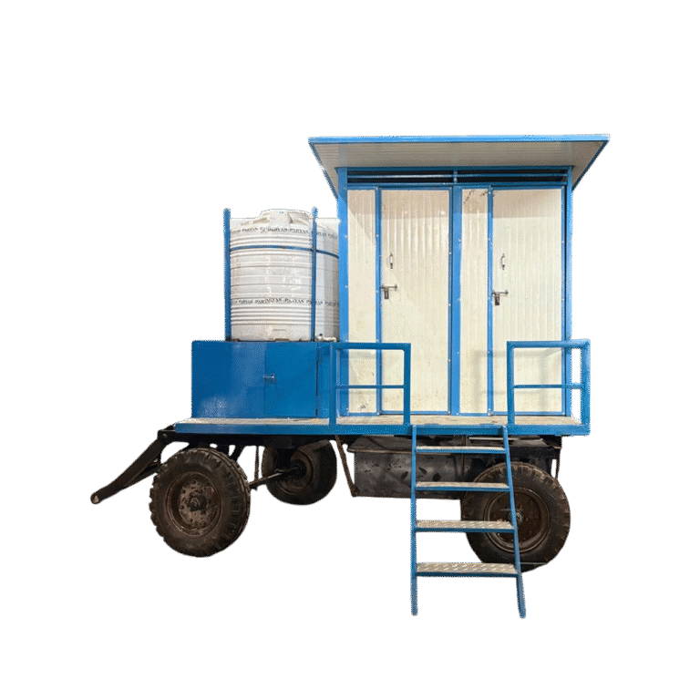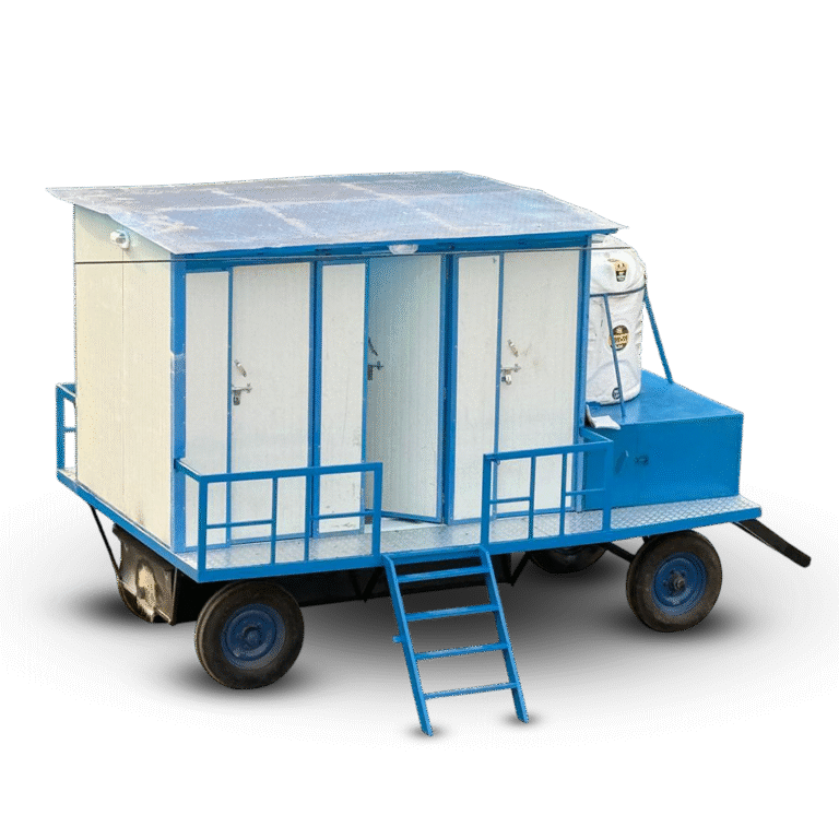 A movable sanitation unit designed to provide hygienic toilet facilities at remote locations, public gatherings, construction sites, or during emergencies. It comes equipped with water tanks, waste disposal systems, and multiple stalls, ensuring cleanliness, convenience, and environmental safety on the go. Ideal for urban and rural applications alike.
